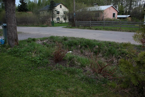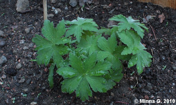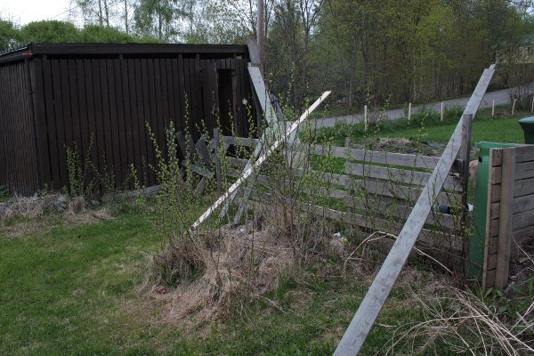Tekemäni terassin tieltä kaivettiin kaksi norjanangervoa pois, niin siirsin ne tontin laitaan ojan vierustaan kasvamaan. Saas nähdä lähteekö. Angervojen tieltä otin jalopähkämöt parempaan talteen. Siivottavana on vielä ojan pohja, jossa on hirveästi vaahteran (vas. laidassa) lehtiä ja risuja viime vuoden vaahteran karsimisesta. Ojassa ei ole nurmikkoa joten se on melko villihkö ja siellä viihtyvät etanatkin… pitäisköhän ojalle tehdä jotain?
