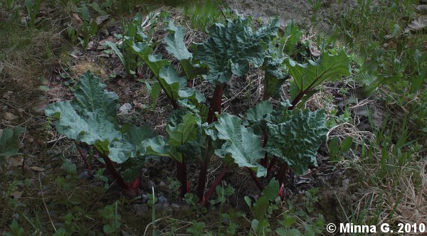 Raparperit ovat kurkistaneet jo useita päiviä sitten, mutta ovat lähteneet nyt vasta kunnolla kasvuun. Syy tähän lienee todella lämpimästä ilmasta jota täällä on pidellyt viimeiset viikon ajan.