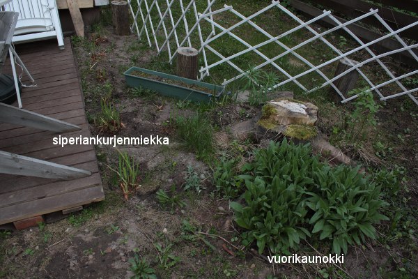 Istutin tekemäni terassin viereen siperiankurjenmiekkoja ja vuorikaunokkia.
