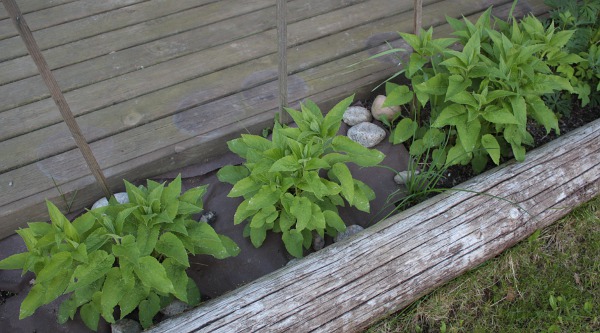Ukonkellot viihtyvät kukkapenkissä… tässä näkee, kuinka rikkaruohot pysyvät kankaan toimesta pois näkyviltä. Tarkoituksena on tietenkin laittaa kasvin juurelle jotakin ettei kangas paista näin pahasti seasta. Mutta kunhan taas on aikaa…