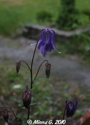 Otin poutaisella hetkellä muutaman kuvan puutarhasta. Akileijoissa (vasemmalla) on nuppuja, ja yksi nuppukin on jo auennut. Hieman olen yllättynyt siitäkin, että keväällä istuttamani siperiankurjenpolvet (oikealla) ovat tehneet myös nuppuja.