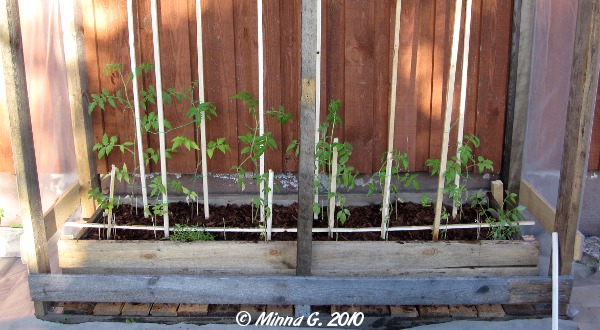 Kyllä oli hikistä hommaa saada tomaatit kasvihuoneeseen! Useiden päivien tappelujen jälkeen, sain vihdoinkin tomskut sinne mihin ne kuuluvatkin. Olen kirjoitellut tänne kasvihuoneen eri rakennusvaiheista, ja nyt se on sellaisessa kuosissa, että sitä voi käyttää. Edestä puuttuu vielä ovet, mutta jos ei kauhean kylmää tule, niin niitä ei ole siihen pakko heti tehdäkään. Valitsemani tomaattilajikkeet nimittäin soveltuvat avomalle kasvatettaviksi.