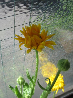 Kehäkukka ei meinannut aloittaa parvekkeella kukintoaan sitten millään. Liekö syynä oli sitten liika kuumuus. Pihalla kukkapenkissä ne suorastaan rehottivat, ja ovat kukkineet jo ainakin kuukauden. Ehkä sinne pieni muistilista, että niitä ei kannata istuttaa enää ihan niin lähekkäin, tai ne pitää ainakin tukea jollakin, kun menevät kasvaessaan ihan solmuun. Sama pätee näköjään tuolla parvekkeella kukkalaatikossa!