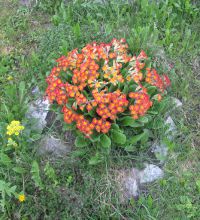 Akileijan varret ja kukinto ovat hieman tahmaiset, ja niihin on tarttunut kadun päässä olevasta haavikosta irtoavaa höttöä. Toivottavasti höttö ei haittaa kukkimista! Kaikki akileijat näyttivät karvaisilta…
