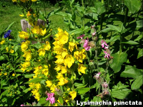 Tarha-alpi, Lysimachia punctata, on saatu naapurin tontilta myös, ja se on mielestäni oikein upea kasvi! Olen tainnut istuttaa kukkapenkkiin jonkun vaaleanpunaisen rikkaruohonkin, jonka aion kaivaa syksymmällä pois ensi kesää ajatellen. Tarha-alpien vieressä kasvaa näet nyt uusi ihana myskimalva 🙂 Tästä kukkapenkistä saa myös häädön vuorikaunokki… pitäisin mielelläni näitä kaunokaisia jollain tapaa puutarhassa, mutta kun ne keräävät niin hemmetisti niitä kotiloita. Puhuin naapurin perijättären kanssa näistä kotiloista ja hän lupasi mennä hankkimaan ferromolia jostakin. Voin avustaa heitä heidän tonttinsa kanssa, jotta niistä nilviäisistä päästäisiin eroon!