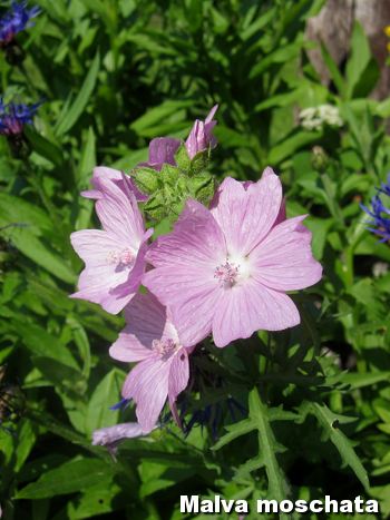 Myskimalva, Malva moschata, on myös karannut naapurin villitontilta. Istutin näitä kyllä muutaman taimen tälle puolelle pihaa ihan itsekin, mutta näitä löytyi ihmeellisistä paikoista muualtakin, joihin en ole taatusti kajonnut. Yksi melko rehevä taimi kasvoi akileijapenkin takana sellaisessa paikassa, jossa ei ole edes multaa. Täytyy varmaan syksyllä yrittää siirtää taimi parempaan paikkaan, jos se vaikka lähtisi kasvamaan taasen ensi kesällä. Olen käsittänyt ettei myskimalva pidä siirtelystä, mutta ei kai sitä nyt tuohonkaan voi jättää, kun sille ei saa laitettua maahan edes tukikeppejä 😀 Maa on nimittäin kovaa kuin mikäkin… siinä on vain ohut kerros kivituhkaa, jota on levitetty viiran päälle. Jos joku ihmettelee mitä tai mikä viira on, niin se on jotain paperikoneissa käytettävää kangasta, jonka avulla paperia tehdään. Talon jokin entinen omistaja on ollut nimittäin Stora Ensolla töissä… kuulemma.
