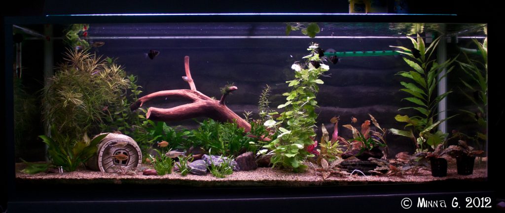 Edellisestä postauksesta onkin melkoisesti aikaa, ja paljon on tapahtunut sen jälkeen. Sain vihdoinkin viriteltyä (mielestäni keskeneräisen) akvataustan eilen paikoilleen, mutta alkaa siltä tuntua, että se pitäisi varmaan tehdä uudelleen… käy vaan mielessä että ”voi ei” 😀