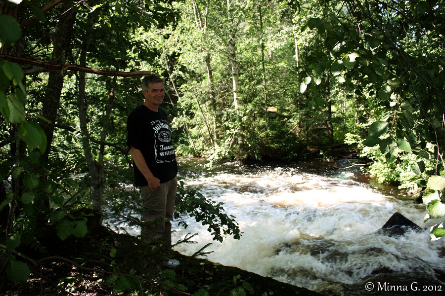 Kosken yli pääsi autolla vaikka vesi oli tuolloin erittäin korkealla. Vesi tuli miltei sillalle, jonka ylitimme. Metsäteitä pitkin kuljettiin jonkin ”erämökin” kohdille, mistä pääsi rappusia pitkin alas joenvarteen laiturille.