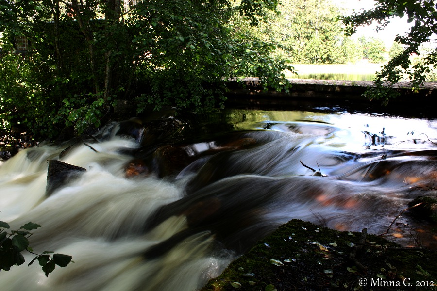 Kuvausvinkki: laita aukko (AV) mahdollisimman pieneksi, ja pidennä valotusaikaa (TV). Tämän kuvan Exif: ISO 100, f/20, 1/2sec. Muu ympärystä pysyy tarkkana, ja vesi menee ”soljuvaksi”. Suositellaan jalustan käyttöä!