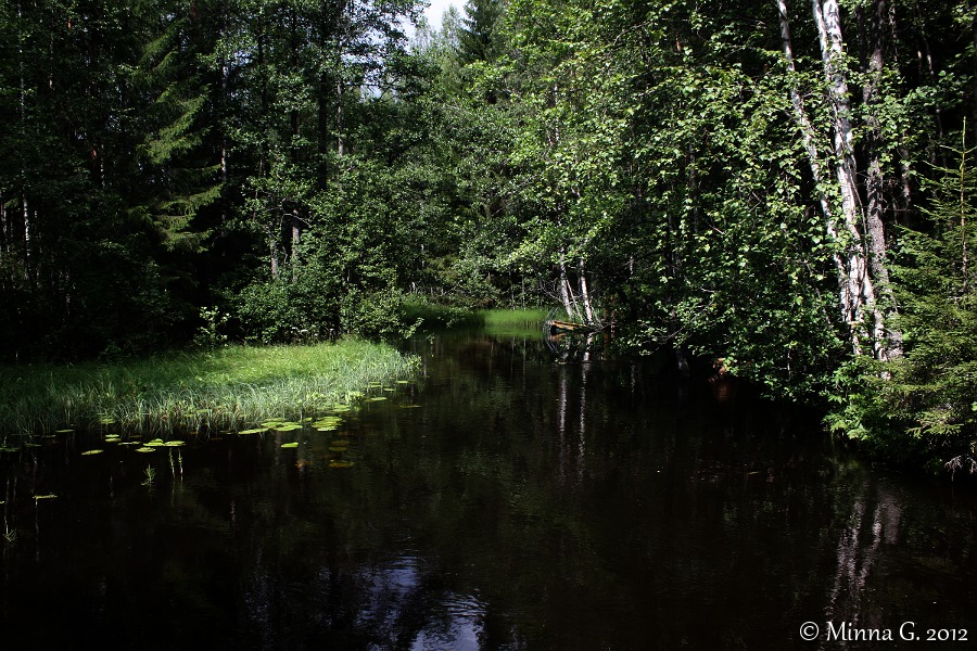 Kuivahkon sienestysreissun päätteeksi pääsin tuttavani, Riston, opastuksella tutustumaan Rautjärven seutuun, ja varmasti iso osa nähtävyyksistä jäi vielä katsomatta. Edellinen postaus päättyi Helisevänjoen rannalla olleeseen venekuvaan, ja tässä siihen hieman jatkoa.