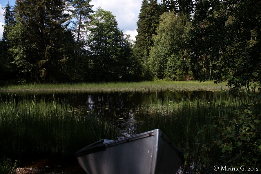 Kuivahkon sienestysreissun päätteeksi pääsin tuttavani, Riston, opastuksella tutustumaan Rautjärven seutuun, ja varmasti iso osa nähtävyyksistä jäi vielä katsomatta. Edellinen postaus päättyi Helisevänjoen rannalla olleeseen venekuvaan, ja tässä siihen hieman jatkoa.