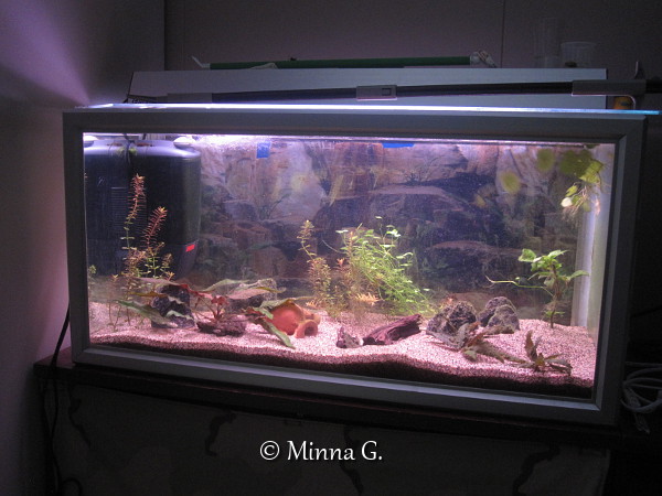 Vaikuttaa nyt siltä, että minulle on jäämässä tänne toinen allas 😀 Olisihan se pitänyt arvata… noh, ei siinä muuta kun sitten sisustamaan sitä vaan. Paikalliseen kalakauppaan tulee kasvilähetys tiistaina, ja menen sinne sitten ostoksille. Tässä tämän hetkinen kuva altaasta. Tavarat + kasvit ovat ihan hujan hajan tuolla, että näitä ei ole juurikaan aseteltu mihinkään.