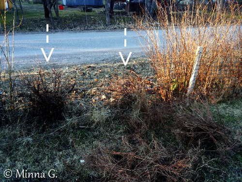 Piha-aidan reunalle on vielä jäänyt kasvamaan pensashanhikkiakin… pätkin kaikki oksat, jotta pusikot olisi helpompi kaivaa ylös ja siirtää toiseen paikkaan. Tilalle tulee samaa pensasaitakasvia, mitä siinä entuudestaankin on ollut, eli Virpiangervoa.