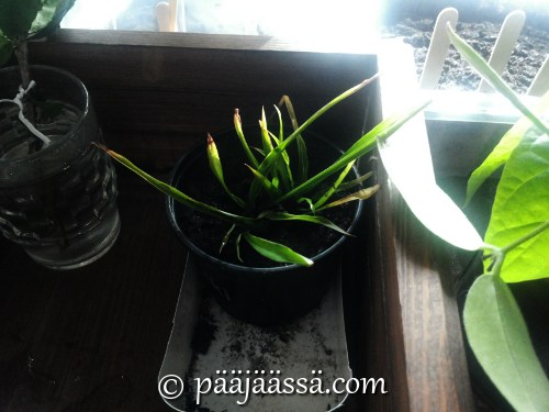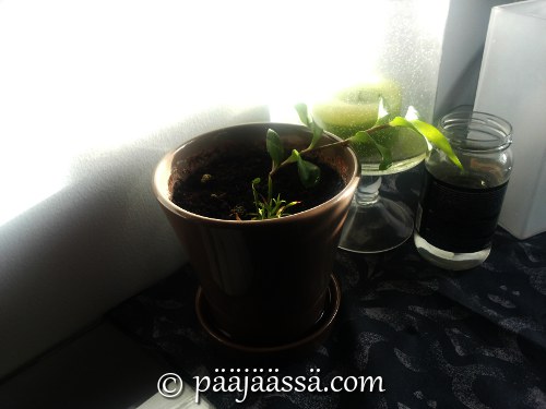 Nyt kun minulla on isompi asunto, ja paljon enemmän ikkunatilaa (olohuoneessa lähes 4m:n seinusta), päätin lisätä huonekasvivalikoimaa. Ihan nyt niitä samoja mitä on aiemminkin ollut, eli kiinanruusua, juorua, rönsyliljaa ja soihtuköynnöstä. Saas nähdä mitä käy!