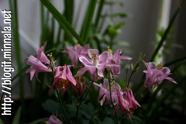 Perennalaatikossa kukkii Akileija Biedermeier ihan täysiään. Sen vieressä on valkoinen Biedermeier, ja sillä oli mielestäni melko lyhyt kukinta-aika. En tiedä sitten onko normaalia vai ei. Muut perennat ovat hieman kitukasvuisia.