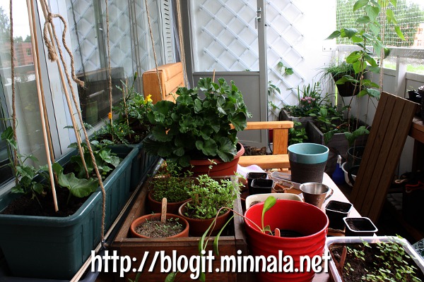 Olihan meillä tosiaankin mahdollisuus nauttia helteistä aiemmin tässä kuussa, ja viimeiset pari viikkoa on ollut ihan ok kesäkeli… sellaiset 15-20°C. Siitäkin huolimatta olen ollut vähän laiska parvekkeeni suhteen, vaikka rehut on sinne istutettukin jo tämän kesän osalta… tai jotain pientä vielä puuttuu. En ole esimerkiksi muistanut laittaa tilliä kasvamaan tuonne papuastiaan, mutta sen voi kyllä sinne survaista vielä, ja hyvin ehtii kasvamaan.