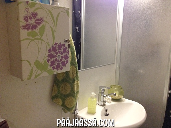 Olin pitkään pohtinut kylpyhuoneeni laittamista jotenkin niin, ettei tuntuisi niin ahdistavalta mennä sinne… Ok – hiukan taustatietoa varmaankin tarvitaan. Eli, muuttaessani tähän asuntoon syksyllä 2013, mukaani tuli pesutorni. Pesutorni oli aika massiivinen ”ilmestys” heti kun astui kylpyhuoneeseen sisään. Mietin pitkään mitä ihmettä tekisin tuolle tilalle ettei se tuntuisi niin ahtaalta. Sain idiksen! Kysyin muutamalta henkilöltä, josko kuivausrumpu voisi olla muualla kuin kylppärissä, ja sain sijoitettua sen lopulta eteiseen, WC:n oven viereen. Tällä tavoin sain kylppäriin lisää ”ilmatilaa”, eikä sisääntulo ollut enää niin ahdistava. Vielä kun saisi päivittäisiä pikkutavaroita piiloon…