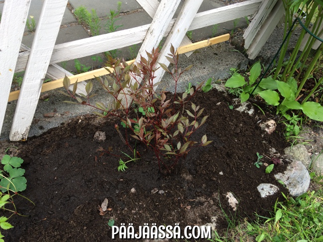 Bongasin ilmoituksen Facebookista, että olisi tarjolla jaloangervon taimia. Eiku niitä hakemaan! Otin tämän punalehtisen juurakon, sekä sitten vihreälehtisen juurakon. Toivotaan, että kukkivat vielä tänä kesänä, kun juurakot on aika ”sellaisenaan” siirrettyjä 🙂