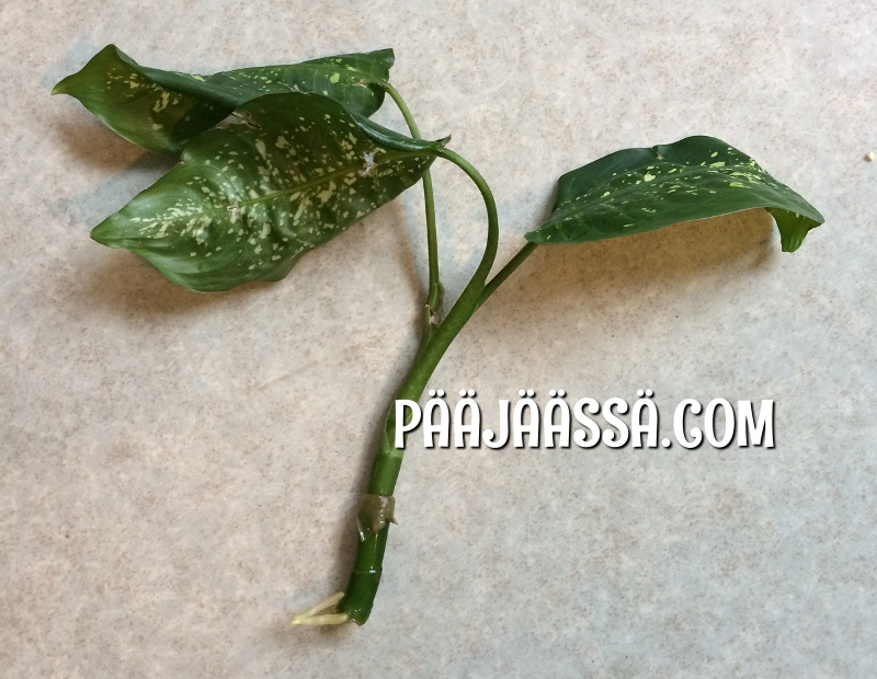 Tuttavaltani saatu kirjovehkanpistokas teki vihdoinkin juuret!