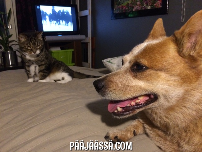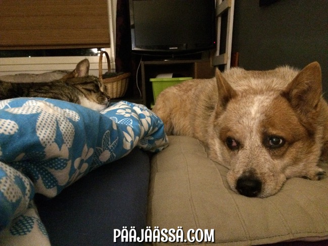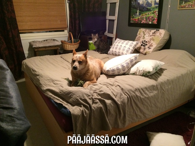 Hauveli kyllä tykkää! Muuta pitäisi tehdäkään hänen kanssaan kun käydä sängyllä leikkimässä ja loikoilemassa 🙂 Siellä lauman on hyvä olla koossa!