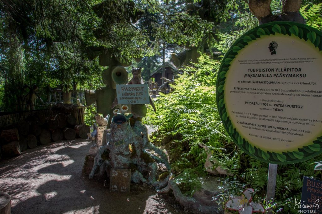 Otin itse muutamia kuvia puistosta ja kuvagalleriastani löytyy sitten lisää… Tässä on sisäänpääsy. Kuulin eilen illalla, että tässä rahalippaalla oli käynyt varkaita 30.7-31.7. välisenä yönä. En voinut uskoa korviani, ja totta se kuulemma oli! Ei voi ymmärtää moista. Toivottavasti saalis oli laiha ja tekijät tavoitetaan!