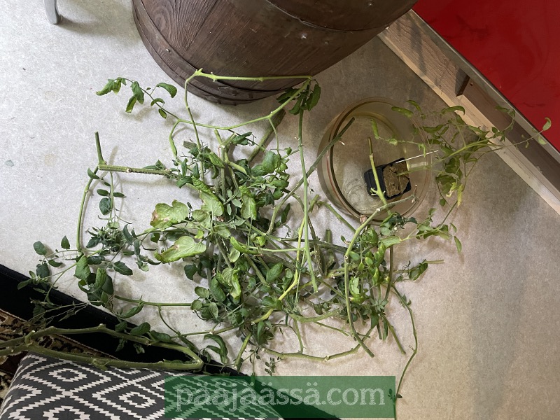 Kyllästyin katselemaan risukasalta näyttävää hydrotomaattia, ja päätin touhuta uuden vesiviljelylaatikon. Se oli odottamassa virittelyä jo keväästä asti. Silppusin vanhan, jo vuoden kasvatuksessa olleen kirsikkatomaatin kaikkine raakileineen paloiksi, ja viskasin pois. Tilalle tuli uudet tomaatit, jotka ovat nyt sitä Money Makeria, mitä alkujaan halusin.