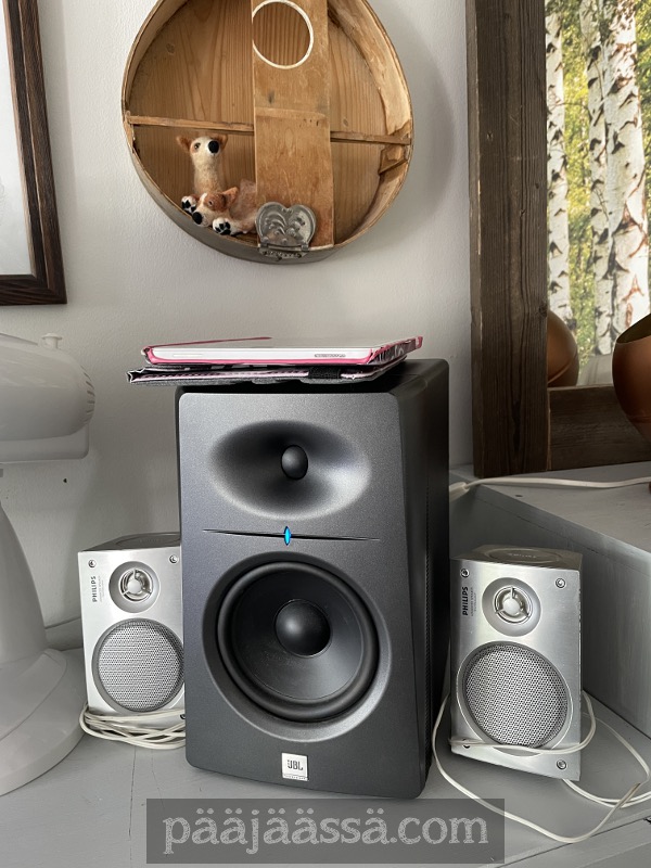 Olen kuunnellut mielimusiikkiani koko viikon. Liekö se syynä siihen miksi olen jaksanut ja motivoitunut touhuilemaan kaikkea. Alkaa kohta jo pelottaa jos saankin kaikki projektit tehtyä… mitä mie sit teen?! No, mutta hyvä kun on laitteita mistä kuunnella. Ei tämä nyt ihan USB-kaiutinta vastaa ja painaakin ihan helv..sti, mutta menee tarkoitukseen kyllä. Vieressä pikkukajarit, jotka oli tarkoitus viritellä partsille. Saisikohan johdot jotenkin ikkunan välistä ujutettua partsin puolelle, ettei johtoa tarvitsisi kuljetella parvekkeen oven kautta… hmmm. JBL-kajaria ei voi viedä parvekkeelle koska siitä lähtee niin kova ääni. Ei siis järkeä.