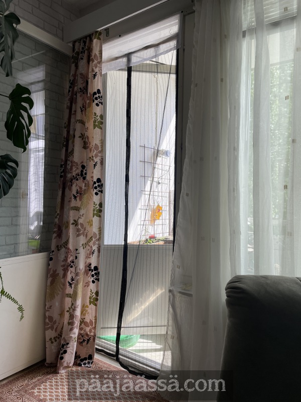 Viikko oli muutenkin täynnä pieniä onnistumisia. Sain viritettyä ötökkäverhon parvekkeen ovensuuhun vihdoinkin. Ei tarvitse sitten säikähdellä milloin mitäkin ötökkää, joka päättää tulla tutustumaan asuntooni. Päätin tänä vuonna, että jokainen öttiäinen saa pitää henkensä, jollei tule naamalle haistattelemaan. Lämpimillä keleillä sisälle tupsahtikin ties minkälaista pistiäistä (Icneumonoidea) jotka kävivät moikkaamassa minua, ja lähtivät samantien, onneksi, pois.