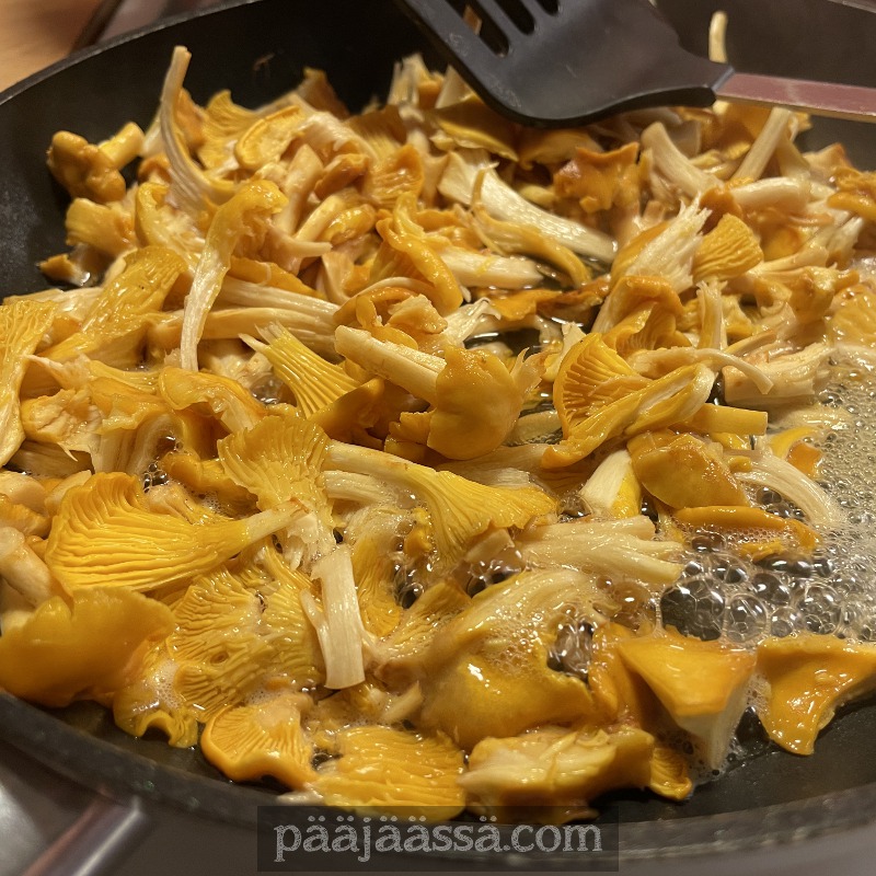 Jotain pikkujuttuja on saatu tehtyä kuitenkin, mitä on tottunut tekemään vuosien saatossa. Kävimme serkun kanssa keräämässä kanttarellejä kuun alussa. Onneksi löytyi edes vähän. Käsittelin ne sillä tavalla, että putsasin ne, revin ne pienempiin osiin ja paistoin kevyesti niistä suurimman osan nestettä pois. Sitten vaan pakkaseen levyiksi lopun nesteen kera. Olen todennut, että tällä tavalla kanttarelleistä tulee omaan suuhun sopivammat. Muitakin keinoja on kokeiltu.