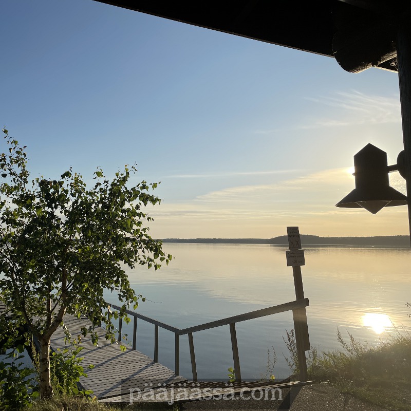 Kun aurinko alkoi painua horisontin taa, järvimaisema muuttui silmiä hivelevän kauniiksi. Immalanjärvi on yksi suosikkipaikoistani Imatralla. Se on itse asiassa hyvin lähellä, missä asun. Nämä tuttavan pippalot olivat Päivärannan saunalla.