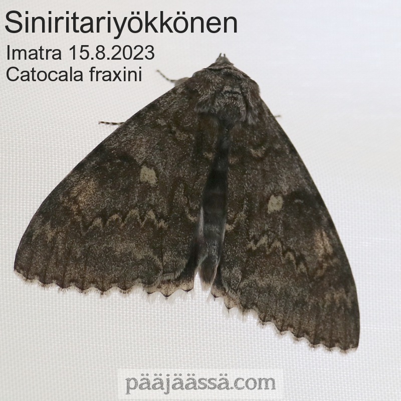 En tiedä mitä minulle on tapahtunut, mutta olen alkanut bongailemaan mitä ihmeellisempiä ötököitä tämän kesän aikana. On hämähäkkiä ja vaikka mitä. Sain kokea yhden uskomattoman asian 15.8.2023 kun parvekkeelleni oli jostain lentänyt siniritariyökkönen. En ole eläessäni nähnyt niin suurta yöperhosta. Se oli aika vaikuttava näky, jos asian voi näinkin lievästi ilmaista. Sain kuin sainkin otettua siitä minkäänlaista kuvaa, ennen kuin se lähti pois omille teilleen.