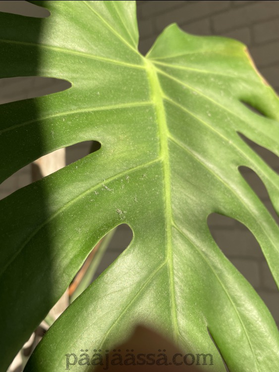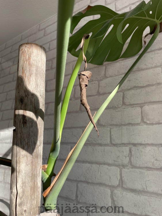 - Peikonlehden karsinta. Iso peikonlehti on pätkittävä ja aloitettava kasvatus uudelleen. Tarvitsee tukevan kiipeilytuen.