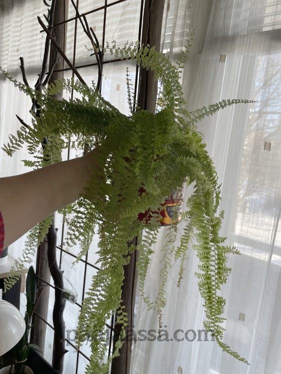 Kävin miettimään, milloinka olin tuon saniaisen ostanut, niin tietohan onneksi löytyi täältä omasta blogista, kun vähän kelaili artikkeliarkistoa taaksepäin. Yksi artikkeli löytyi päivämäärällä 12.5.2020, jossa olen esitellyt tämän kuvassa olevan saniaisen. Olin ostanut sen ilmeisestikin Lidlistä. Lidlissä oli eilenkin myynnissä saniaisia pari kappaletta. Pitäisiköhän käydä ostamassa ne pois? Tosin, pitää muistaa ottaa omat termopakkaukset mukaan, kun kaupasta ei enää saa paketointipaperia kasveille. Tämä on iso miinus kyseiselle lafkalle! Saapihan heiltä toki ostaa pakasteille tarkoitettavia termokasseja, jos mielii saada kasvinsa paleltumatta kotiin.