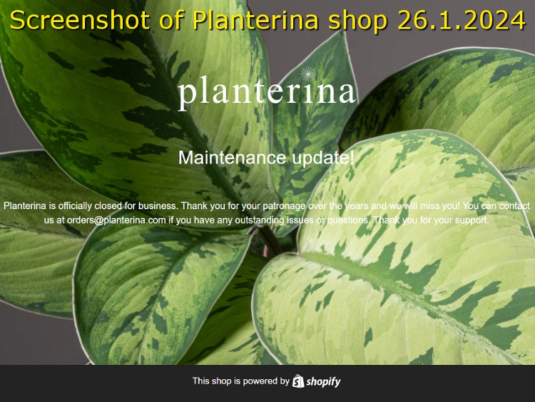 Sitten vähän uutisia huonekasviharrastelijoille. Satuin eksymään uudelle kanavalle YouTubessa, jossa kerrottiin, että seuraamani Planterina-kanava on lopettanut toimintansa. Siis mitä ihmettä sentään. Kyseisellä kanavalla oli yli miljoona tilaajaa ja kymmenittäin videoklippejä. Nyt ne ovat kaikki hävinneet kuin tuhka tuuleen. Mitä heille oikein tapahtui? Vielä viikko sitten katselin videopätkiä kyseiseltä kanavalta ja nyt sitä ei enää ole olemassa. Aika raju temppu, sanoisinko. Siis yli miljoona tilaajaa… huhhuh!
