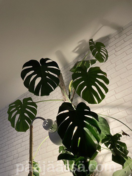 Sinällään aika vähältä näyttää, mutta eiköhän näissäkin ole projektia kerrakseen. Viimeisin saniaspotti on myös jakamatta ja se täytyy tehdä tässä lähipäivien aikana, ettei kohta ole liian myöhäistä. Toinen akuutti kasviasia, joka pitää tehdä, on peikonlehden leikkaus. Otan siitä itselleni latvapistokkaan ja laitan sen uudelleen kasvamaan. Tämä on pakko tehdä pian. Jos vaikka saisin peikon kasvuun tässä kevään aikana jo. Se on muuten iltavalaistuksessa hieman jopa pelottavan näköinen!