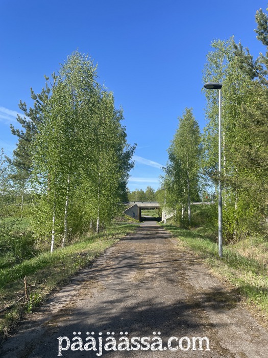 Pysähdyin tunnelin hujakoille kuuntelemaan kun pensaikosta kuului erikoista linnunääntä. Minullahan on sellainen sovellus puhelimessa, joka tunnistaa linnut laulun perusteella. Tässäpä oli uusi tuttavuus sitten, pensaskerttu. Niitä oli teiden välissä olevassa pusikoissa useita. Tallensin lintujen laulut ja jatkoin taas matkaa.