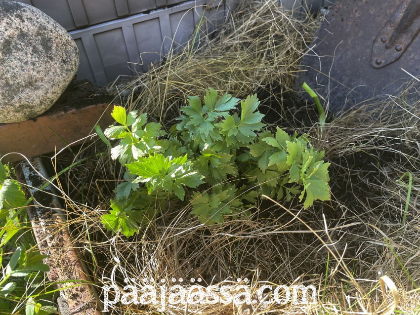 Päädyin vanhempieni pihalle istuttamaan lipstikan, jonka juurakon olin tuttavaltani saanut. Lipstikka on todella hyvä yrtti lihapatoihin. Esimerkiksi karjalanpaistista tulee erittäin maukas, kun liemeen lisää lipstikkaa.