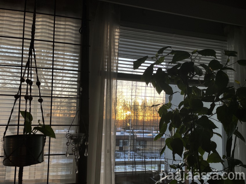 Tuli todella hyvä mieli kun sain homman tehtyä niin sain sitten samalla hujauksella tehtyä muitakin asioita, kuten järjestellä parveketta. 11.12. Sain jotenkin virtaa tästä päivästä, kun aamu alkoi ihanalla auringonnousulla ja laski ihanaan auringonlaskuun.