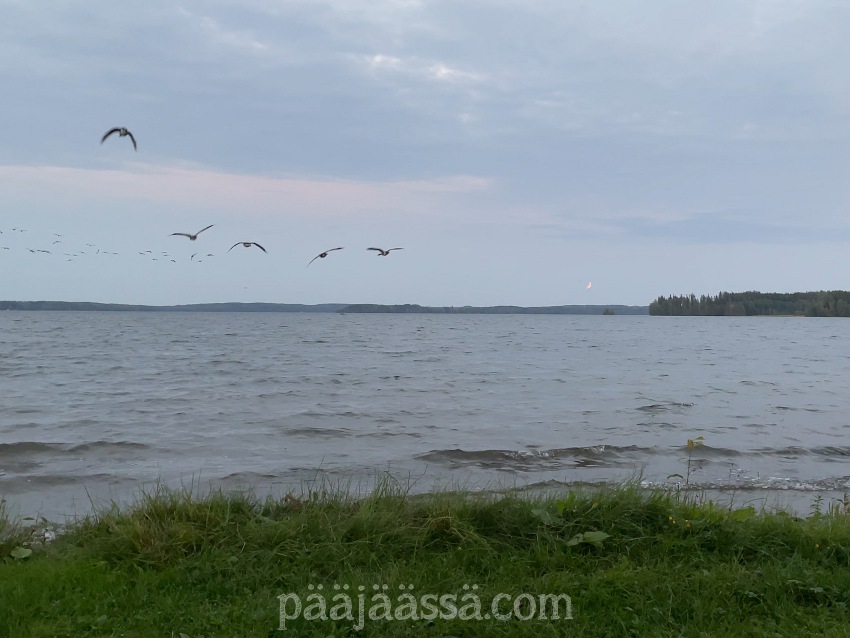 Kävin Immalanjärven rannalla pitkin viikkoa. Järvelle oli kerääntynyt useampana iltana hanhiparvia, joista jotkut lensivät aivan ylitseni. Se oli hienoa katseltavaa. Sain napattua näistä tapahtumista videoita, joita aion sitten käyttää joissain tulevissa projekteissa. Joissakin videossa näkyy kuunpimennys takana. Tai kuu on niin pienenä taustalla, että ei siitä nyt ihmeemmin saa selvää. Hanhien saapuminen järvelle oli vain jotenkin maagista, kun ranta oli täynnä kuunpimennystä katsomaan tullutta porukkaa.