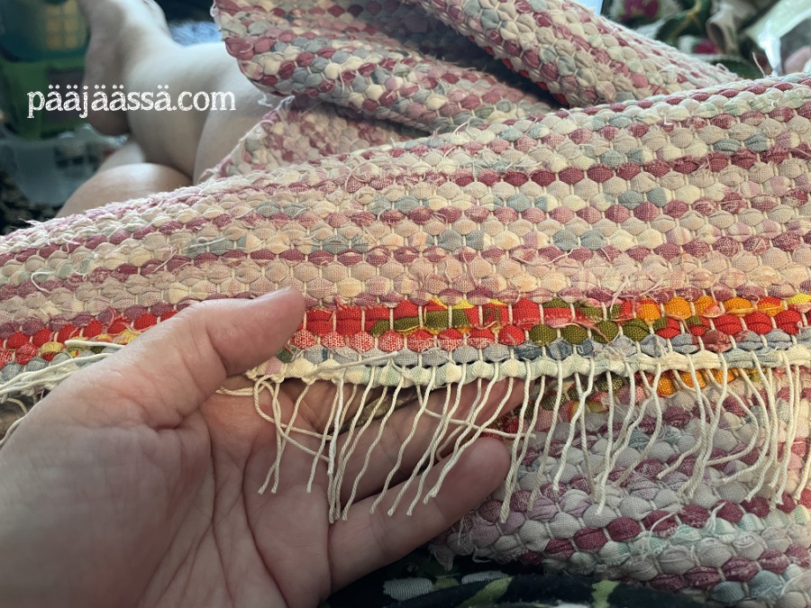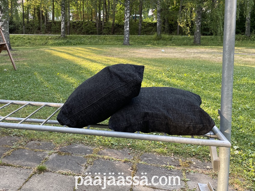 Siivoskelin kesän aikana muutakin rompetta asunnostani pois, ja kyytiä saivat myös pari suurehkoa tyynyä, joita säilyttelin turhanpäiten tulevaisuutta varten. En vaan keksinyt niille mitään käyttöä, joten ne saivat lähteä. Onneksi ne kelpasivat jollekin! Nämäkin veivät vaatehuoneessa aika paljon tilaa. Saan nyt tilalle jotain muuta.