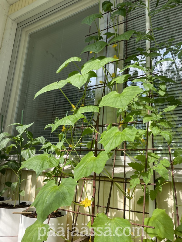 Ajattelin myös kokeilla laittaa ikkunakurkkua kasvamaan talveksi. Saas nähdä mitä siitäkin tulee. Lajike on sellainen mikä ei tarvitse hyönteispölytystä, eli se on partenokarppinen lajike. Tämä tuleva lajike tekee vain tyttökukkia sitten, niin jokaisesta kukinnosta voi muodostua kurkku.