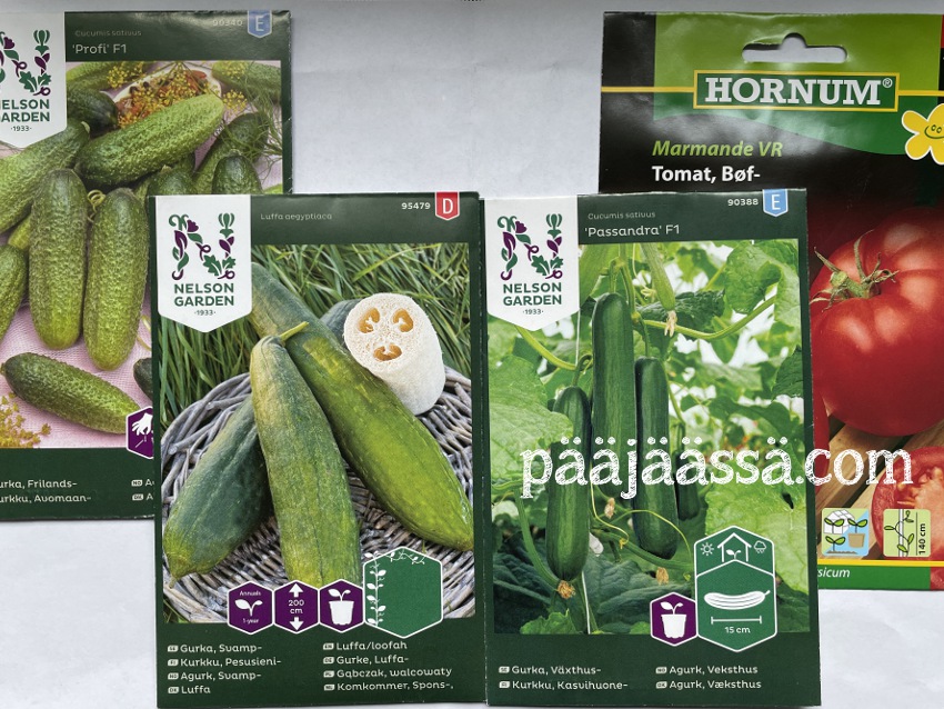 Leopardihan ei pääse pilkuistaan, joten tilasin netistä uusia hyötykasvien siemeniä. Seuraavaksi kasvatukseen tulevat pihvitomaatti, joka minulla on aikaisemminkin ollut. Lisäksi tilailin erilaisia kurkkuja. Yksi niistä on pesusienikurkku. Kun sen hedelmä kypsyy, ja sen jättää kuivumaan, siitä tulee pesusieni. Näin tällaisen jossain tuubivideossa. Pakkohan sitä on kokeilla!