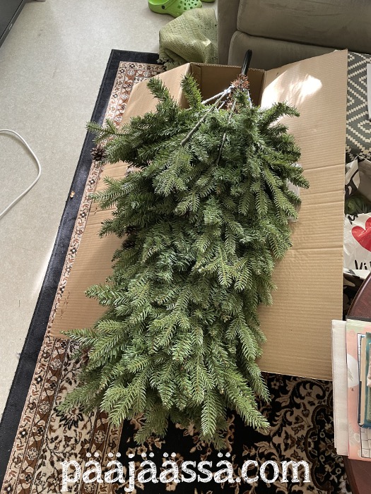 Purin joulukuusen kuitenkin olohuoneen nurkkauksesta pois, vaikka oli aikomus pitää se siellä ympäri vuoden. Joulukoristeitahan siinä ei ollut, pelkkä kuusi vain. Teen nurkkaukseen tilaa jollekin muulle asialle. Ehkäpä siirrän vinyylilokerikon sinne? Nyt vaan pitäisi saada kuusi jotenkin mahtumaan laatikkoon takaisin ja vietyä se säilöön. En ole vielä päättänyt missä säilyttäisin sitä.