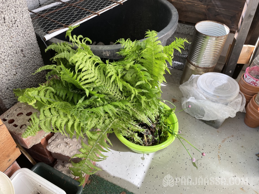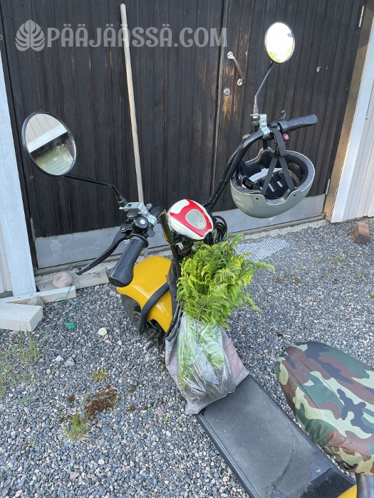 On siinä varmasti ollut ihmisillä ihmettelemistä kun olen kuljettanut saniaiset kotiin. Kävin kaivelemassa niitä vanhempieni pihalta, koska niitä sikiää sinne joka vuosi ihan tolkuttomasti. Otin pihalta myös jotain muuta, josta kerron sitten myöhemmin. Sähköpotkulauta on ihan kätevä vehje!