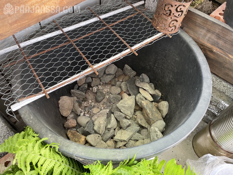Foxyn palju (vesiaihe) on vielä vaiheessa. Paljussa on vielä kiviä, jotka pitää poistaa. Sen jälkeen paljun voi pienehkön puhdistuksen jälkeen kasata.