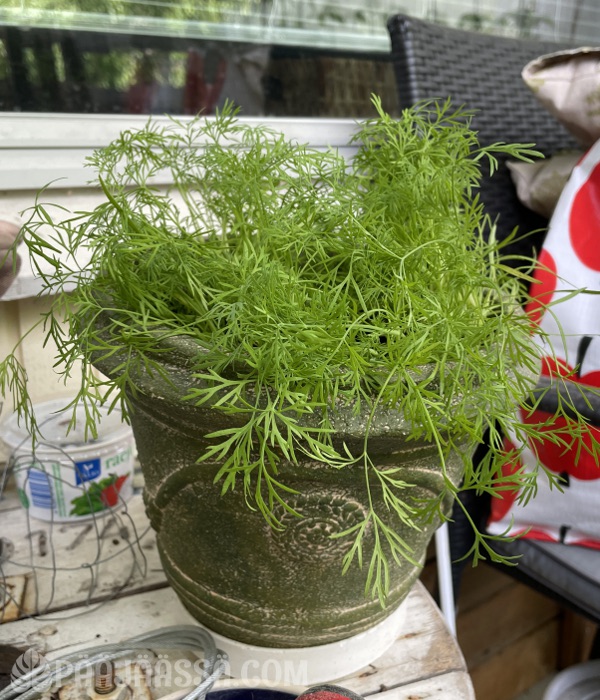 Yksi kotkansiipisaniainen ei oikein viihdy astiassaan. En tiedä kärsiikö se kuivuudesta vai menikö sen istuttamisessa jotain pieleen. Muut voivat ihan hyvin, jopa purkkeihin laitetut saniaiset. Laitoin saniaiset tarkoituksella parvekekaiteen reunan viereen, että sade kastelisi niitä. Ne kun pitävät vedestä. Tomaatit olen suojannut harsolla, etteivät ne kastu liikaa.