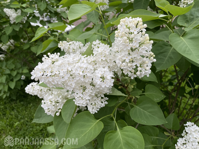 Muutama vuosi sitten istuttamani pihasyreenit kukkivat tällä hetkellä. Osa niistä on kärsinyt lumien työntämisestä, mutta osa on kasvanut ihan hyvin. Toisessa kuvassa on muuten kesämenopelini! Se on sähköllä käyvä. On muuten kätevä! Asiasta nurmikkoon… olen erittäin pettynyt nykyiseen huoltofirmaan ainakin nurmikon puitteissa. Meillä oli aikaisemmin talkkari, joka piti nurmikon todella hyvässä kunnossa. Meillä oli aina nurmikko ihan tikissään. Nyt se on ihan hirveässä kunnossa koko ajan. En tykkää!