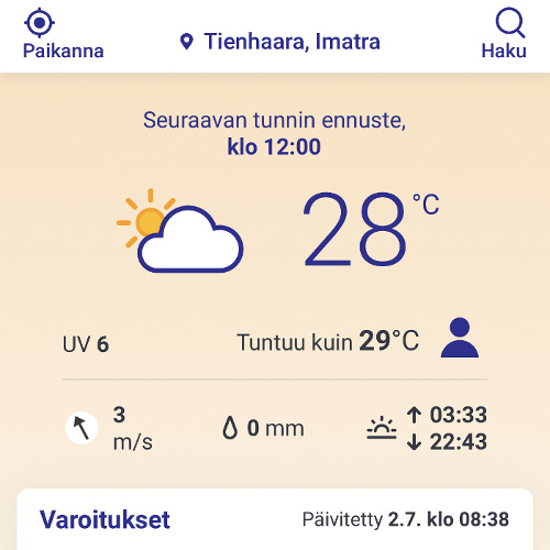 Sade taukoaa aina välillä. Mietin kaupassa käyntiä, mutta kun katsoo sadetutkaa, niin pitää vielä tehdä tarkempia strategiasuunnitelmia. Eihän tuo mitään haittaa, jos kesällä vähän kastuu, mutta ei se kivaa kuitenkaan ole.