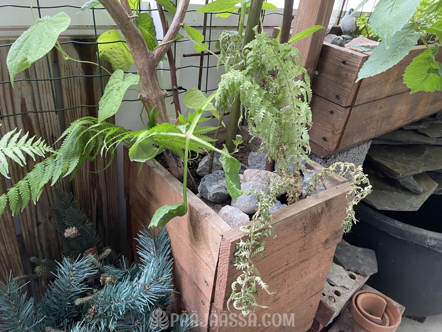 En myöskään pidä kiirettä vesiaiheen tekemisessä. Ei ole mitään järkeä laittaa kivaa suihkulähdettä parvekkeelle porisemaan itsekseen, kun siellä ei kuitenkaan tarkene istuskella. Jos kelit lämpenevät, niin teen sen sitten. Muuten parveke on saanut uutta ilmettä. Esimerkiksi kaikki saniaiset ja parvekkeelle jäävät daaliat ovat istuttettu. Suurin osa roskista on viety pois. Kyllä se kohta kesäkunnossa on!