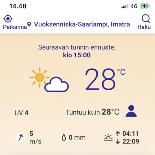 Alkuunsa kesäkuu näytti ihan kivalta kun lämpötila alkoi kohota kahdenkymmenen korville. Mutta nyt on viikon sisällä tullut melkoinen käännös säätilassa, ainakin täällä kaakossa. Eteläisempi Suomi on saanut lämpimiä päiviä enemmän, mutta meidän seutu on ”kärsinyt” matalapaineista, jotka ovat tuoneet sateita moneksi päiväksi. Ei kivaa, sanon minä.